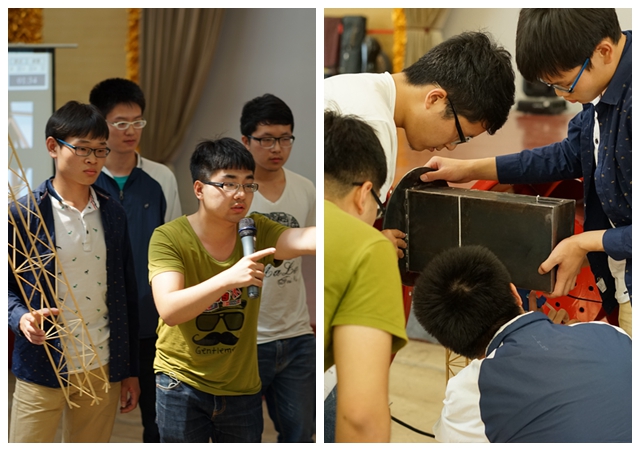 竞赛要求参赛选手用给定的竹皮和502胶两种材料设计、制作一个缩小版的风力发电塔架结构。我校选手在指导教师白若阳和带队教师张强的指导下,精心设计、制作出了既符合承载要求又拥有精美外观的作品,并在答辩环节获得了评委会的一致好评。