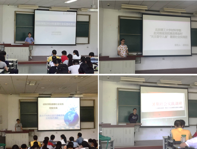 2016年5月24日,材料学院2016年暑期社会实践动员大会分别在良乡校区理科教学楼103教室和中关村校区七号楼报告厅举行。材料学院团委书记、团委副书记、本科生辅导员,2015年暑期社会实践优秀团队代表以及材料学院2015级、2014级全体本科生、2013级本科和研究生全体团干部参加了大会。本次大会由付海东主持。