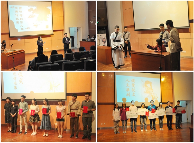 赛程结束后古诗创作比赛与人文短剧比赛的优秀作品进行了展示,展示结束后,娄秀红老师、姜楠老师向古诗创作比赛获奖个人颁发了证书,许欣老师、苟曼莉老师向人文短剧比赛获奖团队颁发了证书与奖品。