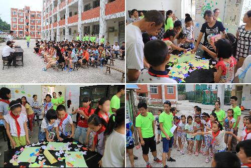 最后的结业联欢会在教室举行,实践团成员提前将教室布置成了展览馆,展出孩子们的绘画和折纸作品。联欢会开始后,孩子们带着家人立刻涌进来,宽敞的教室立即变得拥挤不堪。随后,实践团成员将从北京带来的纪念品赠送给孩子们,并给每人准备了一张合照留作纪念,孩子们用歌声作为回报,一首《让我们荡起双桨》尤为令人感动。除此之外,实践团成员还举办了趣味运动会,现场欢声笑语不断。
