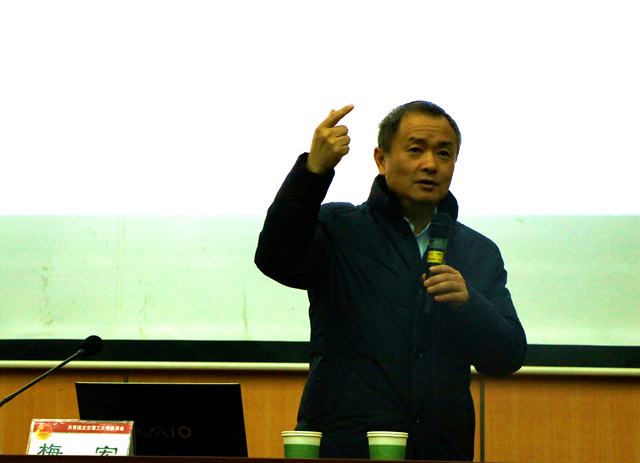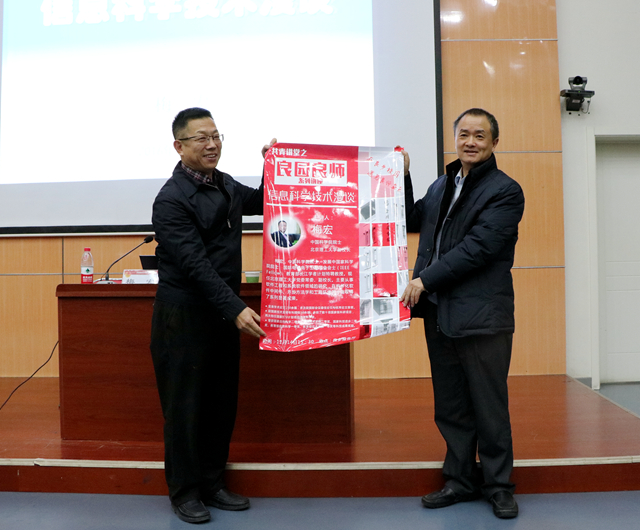 梅宏院士以《信息科学技术漫谈》为题,从人类经济活动和三类产业和的发展开篇,自人类的全球化进程、经济发展的长波规律、第三次工业革命等多个视角,阐述了信息技术在人类社会发展中起到的作用,以及信息技术对当今社会和在未来较长时间内对经济社会发展的重要意义。“在工业化进程当中,材料、能源和信息成为我们现代社会发展的三个支柱,在知识经济时代,信息尤为重要,在未来的较长时期,信息技术仍然会是经济发展主要驱动力”,梅宏院士从数据的角度对信息技术进行了阐释。他为师生们从信息技术的特点、信息产业的现状、信息技术对世界的影响等方面对信息科学技术的发展现状进行了介绍,并以谷歌和苹果的案例阐述了互联网科技在创新的时代所扮演的重要角色。梅宏院士认为,信息技术领域包含以下几个热点,包括云计算、物联网、移动互联网、社交网络、大数据、虚拟现实等热点技术领域,针对当前信息技术未来的发展趋势和所遇到的挑战,提出了通过追求质变和利用互联网来突破传统模式解决不了的一些问题。“信息时代,计算是核心,计算思维应该成为每个人思考和认识世界的重要手段。”梅宏院士说到。