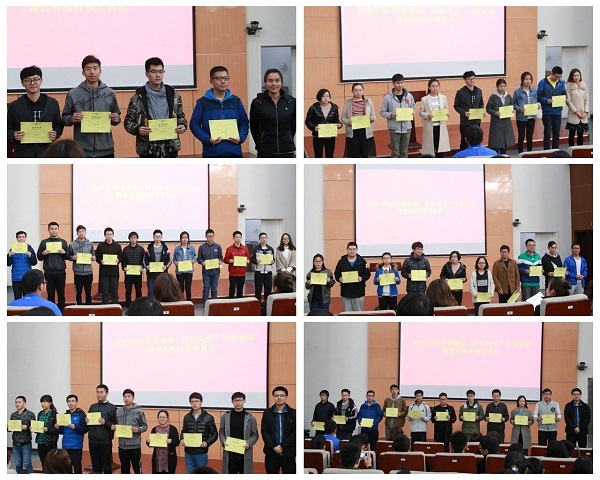 为营造“比、学、赶、帮、超”的优良学风,鼓励同学们树立远大理想,勤奋学习,经学院批准授予左宏志等71名同学“成绩优异奖”,授予吴与伦等31名同学“单科优异奖”,授予陈心愉等33名同学 “飞跃进步奖”;授予博雅园329等16个寝室“优良学风寝室”;授予04011507等3个班级“班级优良学风班”,授予04011505等5个班级“先进班集体”,与会老师们为获奖集体和个人代表颁奖。