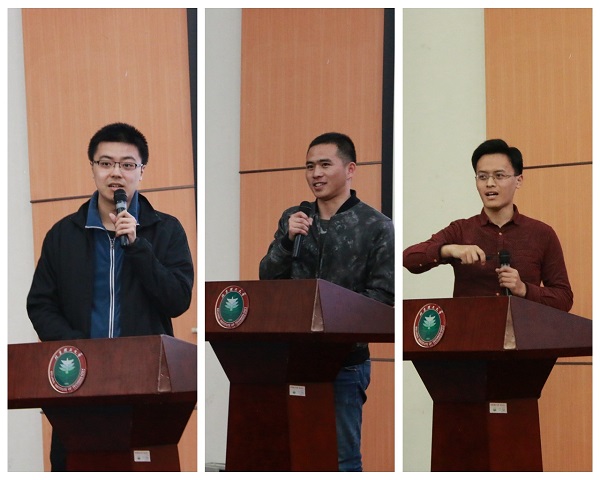 青春榜样付时尧、叶云、科技创新团队代表薛晓辉分享了他们的青春故事。付时尧结合实验室科研项目,用风趣幽默的语言讲解了如何进行科研突破,号召同学们在学习中要树立科研自信,勇于面对疑问,加强基础课学习。叶云鼓励大家从低年级开始培养科研意识,积极参与科技创新实践和竞赛,拓宽眼界。薛晓辉用自己团队参赛经历告诉同学们,做事贵在坚持,才能有所回报。