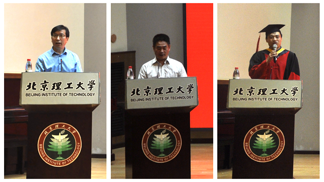 郭德洲同学代表2017年夏季毕业研究生发言,他通过回忆在菁菁校园中成长的点滴向母校、领导和老师们表示了深深的感谢和崇高的敬意,并祝愿米兰milan官方网站和机电学院蒸蒸日上,续铸辉煌,祝福老师身体健康、万事如意,祝愿2017届全体毕业生扬帆远航、鹏程万里。王海福教授是机电学院兵器科学与技术学科特聘教授、博士生导师,2017年首届全国创新争先奖获得者,2016年国家技术发明奖二等奖获得者,毁伤与弹药工程系主任,本次典礼中作为教师代表发言。他引用《周易》中的“天行健,君子以自强不息。地势坤,君子以厚德载物。”表达自己对毕业生们的殷切期许,希望同学们都能成为自强自立、具有深厚品德的祖国栋梁。王老师还教导毕业生们要懂得感恩,要对国家和学校的培育常怀感恩之心,要用自身行动来践行这一份感恩之情。随后,机电学院院长陈鹏万致辞,他对毕业生们提出三点希望,即“希望同学们树立崇高的理想;希望同学们勿忘科研精神;希望同学们任何时候都要勇于担当”,并祝愿同学们身体健康、生活愉快,在未来的旅程中努力拼搏,用自己的力量回馈社会,成为一个对社会有贡献的人。