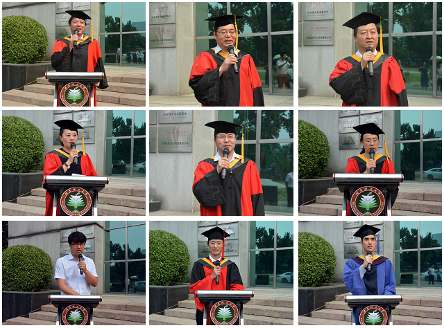 翟弟华代表毕业生发言,表达了对母校和学院悉心培养的感激之心、对导师谆谆教导的感恩之心、对同学风雨同舟的感谢之心,表示无论身在何方,必牢记“德以明理,学以精工”的校训,永远脚踏实地,砥砺前行。