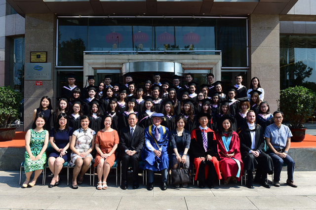 Roger Gibbard教授代表瑞丁大学校长主持毕业典礼。首先刘科成教授宣读了获得瑞丁大学会计学文学学士学位的毕业生名单,Roger Gibbard教授代表瑞丁大学校长与每一个毕业生握手合影,罗丹博士给每一位毕业生颁发学士学位证书。随后,Roger Gibbard教授宣读了本届优秀毕业生名单,罗丹博士给宋浩哲、吕隆基和容玄三位同学颁发了优秀毕业生证书。