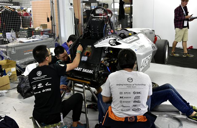 8月的德国天气阴晴不定,比赛开始的几天一直下雨。顶着阴冷的天气,队员们还没有完全调整时差,就每天早上6点从潮湿的帐篷中爬起,随便吃两口面包便奔赴赛场,工作直到夜里12点关闭赛场为止,不断的检修赛车,解决在车检中的问题。在比赛过程中,车队队员积极与仅有的3支参加了动态赛所有项目的车队进行了技术交流,对无人驾驶技术有了更多想法和研究方向。唯一完赛的苏黎世联邦理工大学车队的队长对米兰车队也给予了肯定:“对于无人驾驶,你们有着很棒的想法,对于这项新的挑战,你们做的很不错,希望明年能够再见到你们,再次来到德国赛场。”
