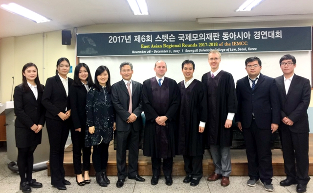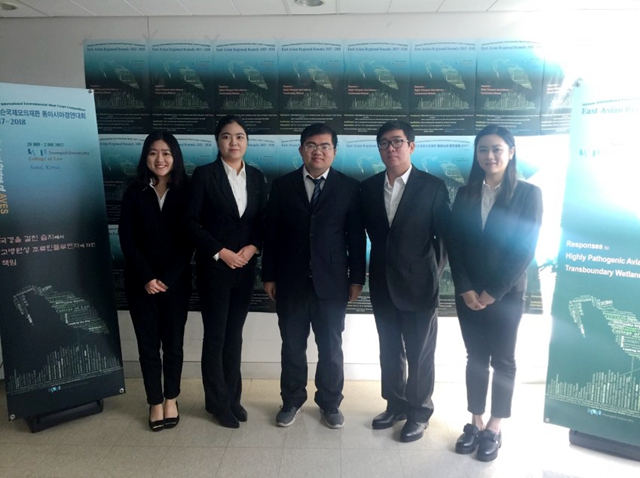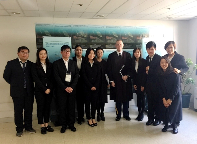 国际环境法模拟法庭大赛创始于1996年,由美国史丹森大学法学院(Stetson University College of Law)主办,是国际环境法领域最具国际影响力的模拟法庭比赛之一。该项比赛包括英文书面陈述和英文口头辩论两部分,赛程分为地区选拔赛和国际决赛两个阶段。地区选拔赛分为北美太平洋赛区、北美大西洋赛区、拉丁美洲赛区、东亚赛区等8个赛区。东亚赛区选拔赛由韩国崇实大学(Soongsil University)承办。本届大赛选取案件涉及湿地保护、迁徙性水鸟保护和生物多样性保护等国际法以及国际环境法前沿问题,东亚赛区吸引了5个国家和地区共12支队伍参加。各代表队在比赛中展开了激烈的角逐,现场战况十分精彩。