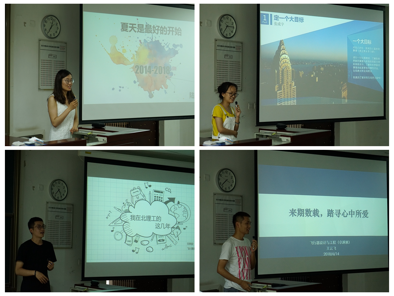 宇航学院2014级本科生德育答辩围绕“担复兴大任,做时代新人”主题教育活动,以一句古诗作为答辩交流会的主题。“欲上青天揽明月”“少年心事当拏云”等豪言壮志的诗句表达出了学子们担当作为的决心与斗志。通过德育答辩,同学们对过去进行了反思与总结,对未来进行了规划和展望。参与德育开题的老师对同学们的答辩进行了指导与点评,帮助同学们树立志向,鼓励同学们担当重任,祝愿同学们前程似锦。