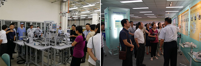 双方举行了“高端流体动力技术研究生实践创新基地”的挂牌仪式,并合影留念。米兰自动化学院一行参观了SMC(中国)有限公司技术中心的研发实验室及全球领先的气动和电子产品的展览室。