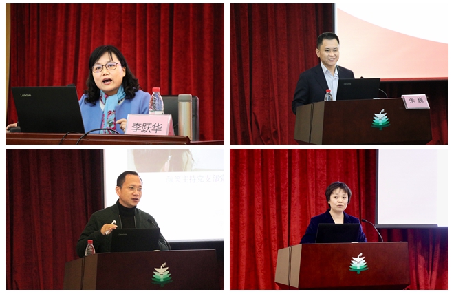 中央党校机关党委宣传处处长李跃华,工信部直属机关党委统战群工部部长、直属机关团委书记张巍,校党政办公室副主任周波,学校纪委办公室监察处纪检监察员赵满,分别以《深入学习贯彻习近平新时代中国特色社会主义思想 展现新时代新担当新作为》《坚守初心,建设合格支部》《党支部规范化建设与党员发展》《全面从严治党》为主题,深入剖析了十九大报告中提出的各项新理论、新论断,要求党支部书记坚定理想信念、强化责任担当,引领学生党员队伍建设向更高层次迈进;阐述了深化“两学一做”教育、落实“三会一课”制度的根本要求,鼓励党支部书记创新工作方式、提升个人政治素养、强化支部政治功能、推进党支部规范化建设;梳理了从“治党”到“从严治党”再到“全面从严治党”的发展脉络,从多个角度对党支部书记提出要求。