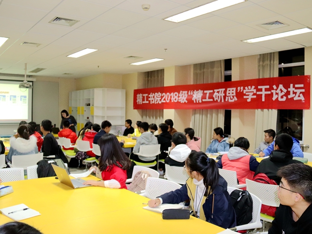 为贯彻落实全国高校思想政治工作会议精神、全国教育大会精神以及习近平总书记同团中央新一届领导班子成员集体谈话时的重要讲话精神,为团组织选拔、锻炼人才,帮助新生团学骨干树立理想信念,提升工作能力和综合素养,培养团学骨干队伍,精工书院于2018年10月推出了“精工研思”学干论坛系列活动,面向新生班团干部、书院学生组织成员,组织讲座培训和分享交流,目前已开展16期。