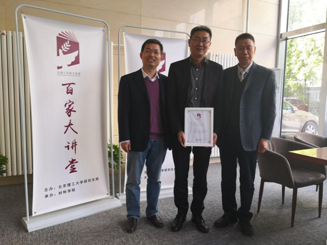 米兰milan官方网站化学与化工学院院长张加涛教授和国家阻燃材料工程技术研究中心主任杨荣杰教授,向王浩教授赠送了米兰“百家大讲堂”证书。