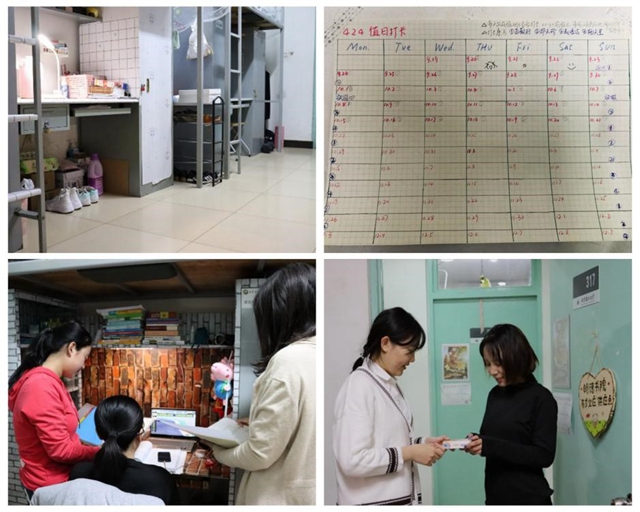 “期末周和考试周时,集体在宿舍内学习,坚持不抬头,不玩手机;若寝室中有人学习,其他的室友就会自觉降低音量,或者在该室友的带动下学习;对于相同的科目,在宿舍相互讨论,互相借鉴,吸取经验......”,以上都是疏桐园425宿舍的“宿舍学习之道”。凭借着良好的宿舍学习习惯,疏桐园425宿舍有两人在上一学年都拿到了国家奖学金。“吕晨晓与陈冰雅同学都是德语专业,他们不仅经常使用德语对话,还会在宿舍里普及德语常用口语,为我们营造了语言学习氛围。”获得学习之家的425宿舍成员唐铭睿分享到。良好的宿舍氛围不仅可以给宿舍成员提供一个良好的学习环境,还有助于培养良好的生活习惯和健康向上的积极心态。