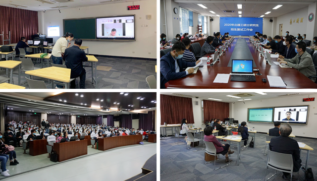 4月15日,我校明确了2020年的硕士招生复试采取远程方式,研究生院立即制定复试方案,遴选网络复试平台,统一部署组织,加强相互协作,在网络信息技术中心、教务运行与考务中心等部门大力支持下,反复测试远程网络环境,组织对各招生学院管理人员和复试小组秘书培训演练,确保复试工作万无一失。各招生学院作为复试工作的具体组织者和执行者,精心准备设备并反复调试,提前联系所有考生进行测试,确保远程复试过程通畅顺利。