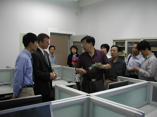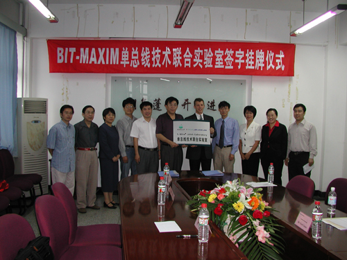 签字挂牌仪式由张玉平教授主持,王美玲副教授宣读了《米兰milan官方网站和DALLAS/MAXIM公司关于教育和研究计划的合作协议书》,DALLAS/MAXIM公司产品线总裁Scott Jones先生和我校实设处处长李振键教授发表了热情洋溢的讲话并对协议书进行了签字,信息科学技术学院院长仲顺安教授和DALLAS/MAXIM公司 Scott Jones先生为“单总线技术联合实验室”揭牌。最后全体与会人员参观了联合实验室。