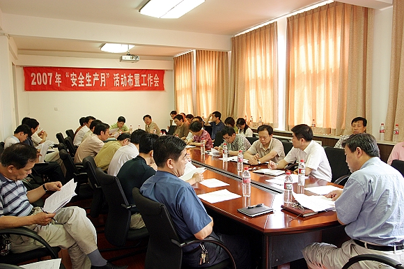 日前,学校在主楼四层会议室召开2007年安全生产月活动布置工作会。党委副书记侯光明、赵平,副校长赵显利出席会议,参加会议的有党办、校办、实验室设备处、保卫处、党委宣传部、校团委、后勤办、总务后勤部、科技处、保密处、学生工作部、西山实验区办公室、膳食部、居管会、产业办负责人及各学院主管实验室安全副院长,会议由党委副书记赵平主持。