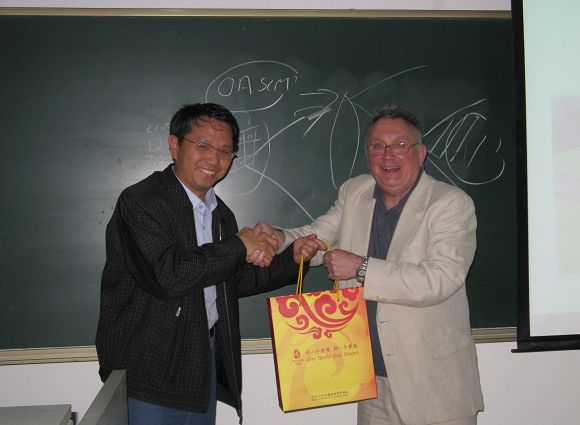 Crossland教授与几位教授热烈讨论学术合作后在一起合影。