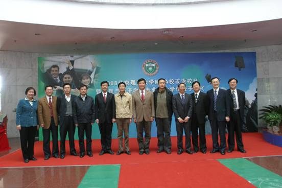下午,管理与经济学院长李金林、院党委书记李波、MBA中心主任董沛武看望来校的近百名校友,亲切地和他们座谈并合影留念。