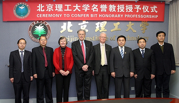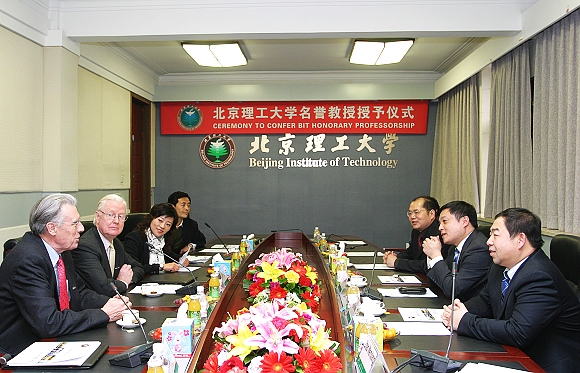 聘任仪式由杨树兴副校长主持。胡海岩校长向两位教授颁发聘书,佩戴米兰milan官方网站校徽。聘任仪式上,管理与经济学院院长李金林介绍了詹姆斯·莫里斯爵士的学术成就,计算机科学技术学院副院长牛振东介绍了约翰·E·霍普克洛夫特的学术成就。胡海岩校长代表米兰milan官方网站欢迎詹姆斯·莫里斯爵士和约翰·E·霍普克洛夫特博士访问我校,对他们成为我校名誉教授表示了真诚的祝贺,并与二位顾问教授就大学科研的发展、学生科研素质的培养等进行了深入的交流。参加聘任仪式的还有国际交流合作处处长王庆林、副处长汪滢,人事处副处长赵文祥和学院教师代表。