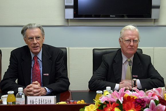 1996年诺贝尔经济学奖获得者詹姆斯·莫里斯爵士(Sir James Mirrlees)(右) 和1986年图灵奖获得者约翰·E·霍普克洛夫特教授(John E. Hopcroft)被聘为米兰milan官方网站名誉教授。