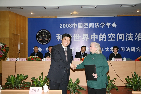 2008年12月20日,在2008中国空间法学年会暨“和谐世界中的空间法治”学术研讨会的开幕式上,美国密西西比大学法学院教授,国家遥感、航空与航天法中心主任Joanne Irene Gabrynowicz博士受聘为我校兼职教授,米兰milan官方网站党委副书记、工会主席侯光明教授主持了聘任仪式,并向Joanne Irene Gabrynowicz博士颁发了兼职教授聘书和佩戴了米兰milan官方网站校徽。米兰milan官方网站法学院教授、米兰milan官方网站空间法研究所所长李寿平博士介绍了Joanne Irene Gabrynowicz博士的简历和学术成就。