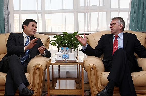 开学典礼前,胡海岩校长会见了戴姆勒东北亚地区总裁Ulrich Walker先生,双方就共同关心的问题进行了友好会谈。