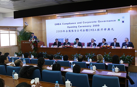 2009年1月13日,我校与德国两所大学合作为国际著名奔驰汽车制造商戴姆勒公司举办的第二期“合规性与公司治理”高级工商管理硕士(EMBA)班开学典礼在校国际教育交流中心三层报告厅举行。校长胡海岩院士、戴姆勒东北亚地区总裁Ulrich Walker先生、德国因戈尔施塔特应用科学大学副校长Doyé教授分别向典礼致辞,第二期班学员代表戴姆勒中国投资有限公司张志敏先生发言。典礼由继续教育学院院长梅文博教授主持。