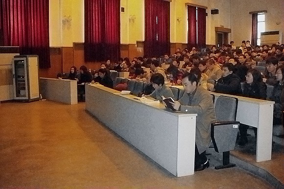 3月12日下午,机电学院在7号楼报告厅召开研究生教育工作会,会议特别邀请了兵器科学与技术一级学科首席教授崔占忠老师作了《怎样写论文》的专题报告。会议由机电学院副院长韩峰主持,机电学院副书记、副院长杨瑞伟出席会议并对研究生就业工作做了动员,2007级硕士研究生、2005级博士研究生和2006级博士研究生近300人参加会议。