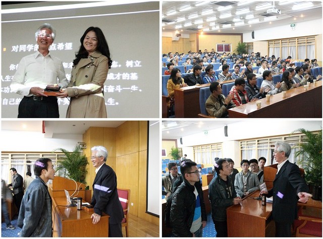 2013年10月28日晚,以“用智慧和汗水书写美好人生”为主题的院士报告会在我校中关村校区举行。作为“信仰•青春•阳光”主题教育活动的重要环节,在校团委、机械与车辆学院共同组织下,被称为“中国馆之父”的中国工程院院士何镜堂来到我校与学生面对面。校党委副书记、副校长李和章,校团委副书记方蕾,机械与车辆学院党委副书记、副院长范文辉等领导老师参与了此次活动。