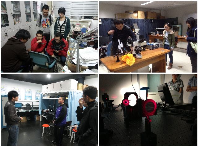 在精密光学及微纳技术教育部重点实验室,“长江学者”李艳秋教授向同学们介绍了实验室的发展现状、研究方向和取得的成果。座谈过后,刘克老师带领同学们参观了实验室。