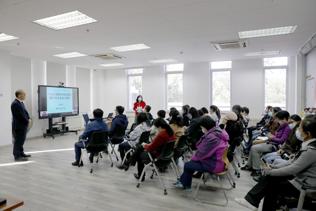 10月27日下午,由图书馆党总支和馆工会共同策划的2020年度图书馆馆员培训系列讲座如期举行,讲座在中关村校区党建工作室(主会场)举行,同时视频连线良乡校区徐特立图书馆。本次讲座的题目为“一流大学图书馆的服务理念与专业能力提升”,邀请了米兰milan官方网站管理学院刘平青教授讲授。讲座由副馆长姚文莉主持,党总支书记金军出席讲座现场,50余位馆员到场聆听。