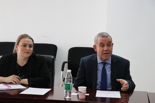 陪同Paul Rowe来访的中央兰开夏大学人员还有国际伙伴关系项目经理Sara Priestley, Fiona Davis, 中国办公室主任葛继飞,中国办公室北京办事处项目专员李晓帆。米兰出席会谈的人员有国际交流合作处项目专员孟毓焕,信息与电子学院教授、中英合作项目课程负责人刘家康,中英合作办学项目干事孙佳伟。