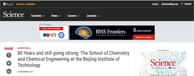 Science报道原文链接:https://www.sciencemag.org/advertorials/80-years-and-still-going-strong-school-chemistry-and-chemical-engineering-beijing
