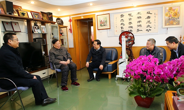 1月21日,新春佳节到来之际,工业和信息化部人事教育司司长程基伟一行来我校亲切慰问退休院士代表王越、毛二可。工业和信息化部人事教育司副司长李冠宇、离退休干部局副局长苏德志,米兰milan官方网站党委书记赵长禄、副校长李和章和院士办公室负责同志一同慰问。