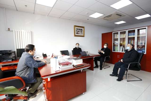 随后,赵长禄、张军与全国模范教师、机械学院教师薛庆和身处武汉、坚持开展线上教学的机电学院教师陈学超进行了视频连线,了解了他们线上教学的准备情况,并特别慰问了陈学超老师的生活和健康情况,嘱咐他和家人做好居家防护,保持良好的健康状态。