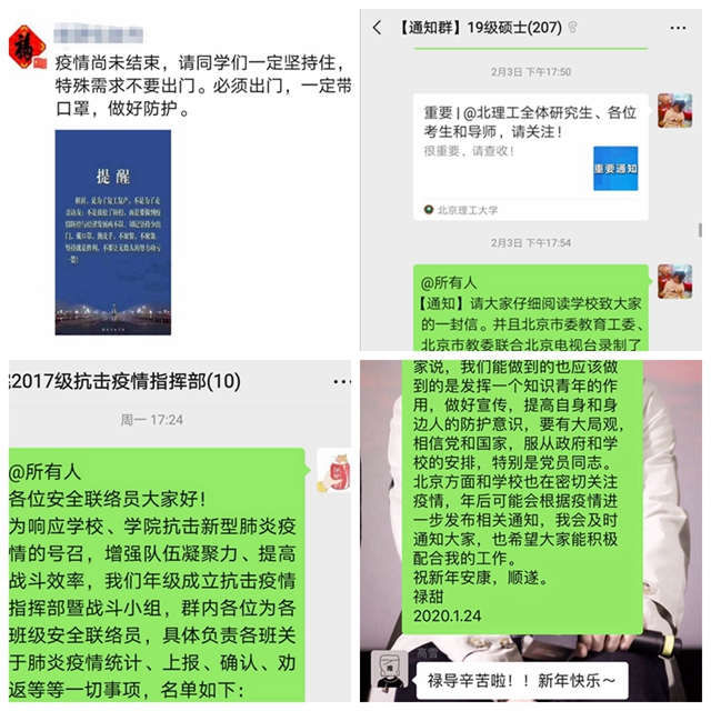 在学院党委领导下,学生工作组迅速恢复工作状态,通过微信公众号、微信群等多种方式向学生传达学校、学院的各项防控工作要求,普及官方防疫科学知识,确保学生知晓最新规定。