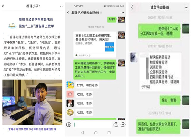 在教学方面,合理高效利用线上教学资源,力求以此为契机,推动信息技术与教育教学深度融合的“教与学”的改革与创新。在本科生教学方面,坚决贯彻落实学校教[2020]9号文件精神,成立本科教学远程教学质量服务保障组以保障远程教学顺利开展,目前,全院共86门课已全部建立教学档案、联络群。在研究生教学方面,通过微信群、邮件的方式组织教师“乐学”培训,共计72门研究生课程已通过专家审核。第一周开课55门,线上教学课堂平稳运行,课程群互动积极。与此同时,组织导师远程指导、分类指导,通过线上讨论、线上答辩等多种方式推进研究生培养及毕业相关工作,实现“延期开学不停学、不停研究”。
