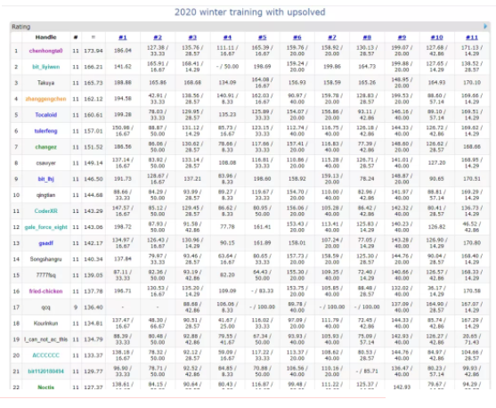 本次“居家科创”线上集训活动共有130名本科生参加,针对2018级和2019级同学采用了不同集训方案。针对2018级同学主要以练习为主,通过大规模做题训练来进行查缺补漏。共进行11场训练赛,并针对性的根据训练中暴露的缺点开展了3个专题授课。针对2019级同学以授课为主,通过补充知识储备来应对更为复杂的比赛题目。共开展12个基础专题培训课,2次专题训练赛、1次集训总结赛。