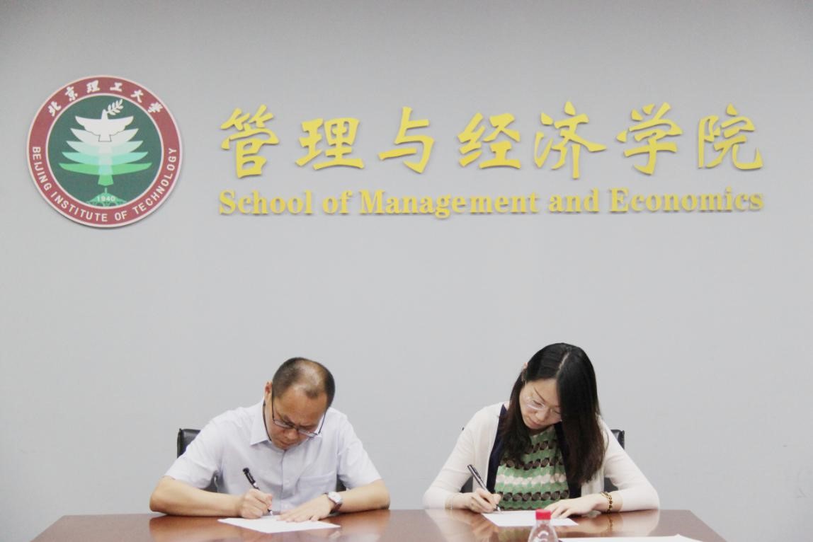 在余海滨、颜志军以及与会人员的共同见证下,杨青林和关宏分别代表上海慧洲信息技术有限公司和管理与经济学院签署了捐赠协议。