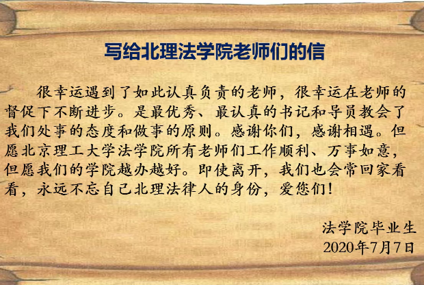 法学院2020届毕业“云”典礼在毕业生们诗歌朗诵《时间的赠礼》和《北理法律人》院歌中圆满落幕。