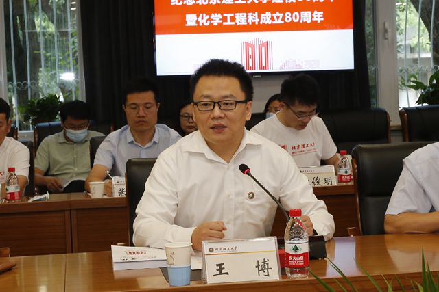 王博代表学校对参加活动的各位校友、荣休教师和师生代表表示热烈欢迎,并围绕 “光荣”“骄傲”“感恩”三个关键词,回顾了学校和化学与化工学科的发展历程和辉煌成就,对多年来一直关心、支持学校建设和发展的老领导、荣休教师、广大校友致以衷心感谢。