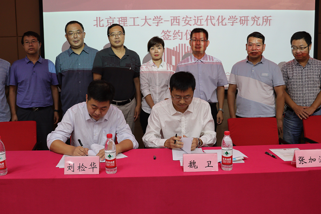 论坛期间,刘检华、魏卫代表双方签署了“米兰milan官方网站——西安近代化学研究所研究生联合培养协议”。自2014年起,米兰milan官方网站化学与化工学院先后招收了10名西安近代化学研究所的青年研究人员为联合培养博士生,以上青年研究人员现大都已成长为所级科研骨干、专业负责人,并承担了多项重大科研任务。此次双方经过协商,签署协议将在科研院所博士生专项的框架内继续联合培养化学工程与技术学科博士研究生,并共同申建国家级人才培养基地,西安近代化学研究所还将为北理化学与化工学院师生开放实验资源,并为优秀的学生提供奖学金。