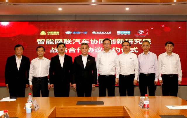 会上,五方代表共同签署了《共建智能网联汽车协同创新研究院战略合作协议》。