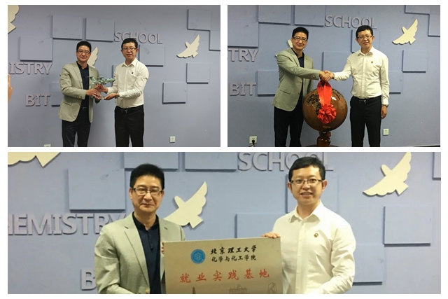 王振华再次向来宾们表示欢迎,并代表化学与化工学院接收新领先公司赠送的建校80周年纪念品并回赠了由我校优秀校友、我国“现代预警机之父”王小谟院士设计的预警机模型,祝愿新领先公司的事业蒸蒸日上。与此同时,王振华代表化学与化工学院为新领先授予就业实践基地牌匾,自此新领先公司正式成为化学与化工学院的就业实践基地。